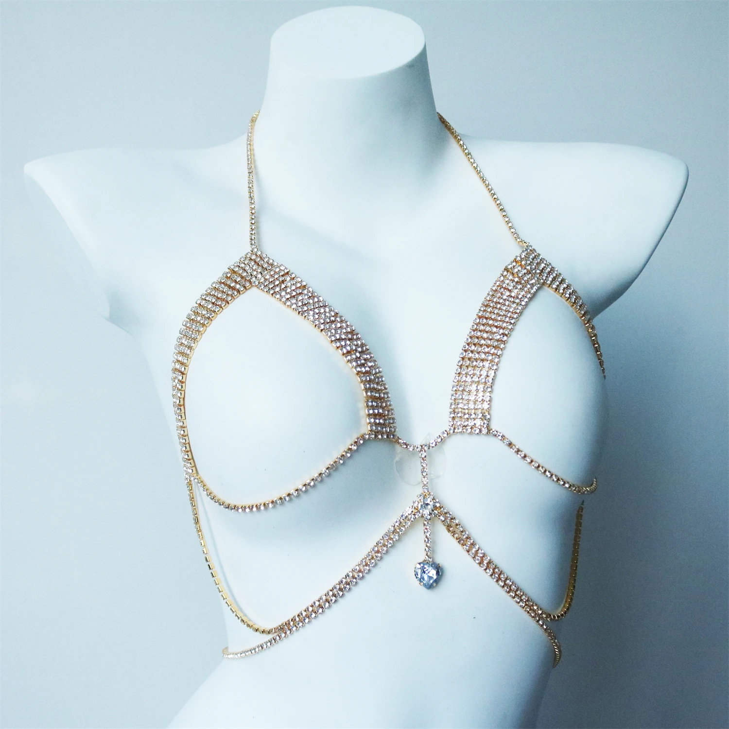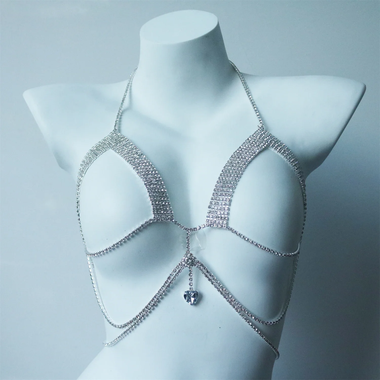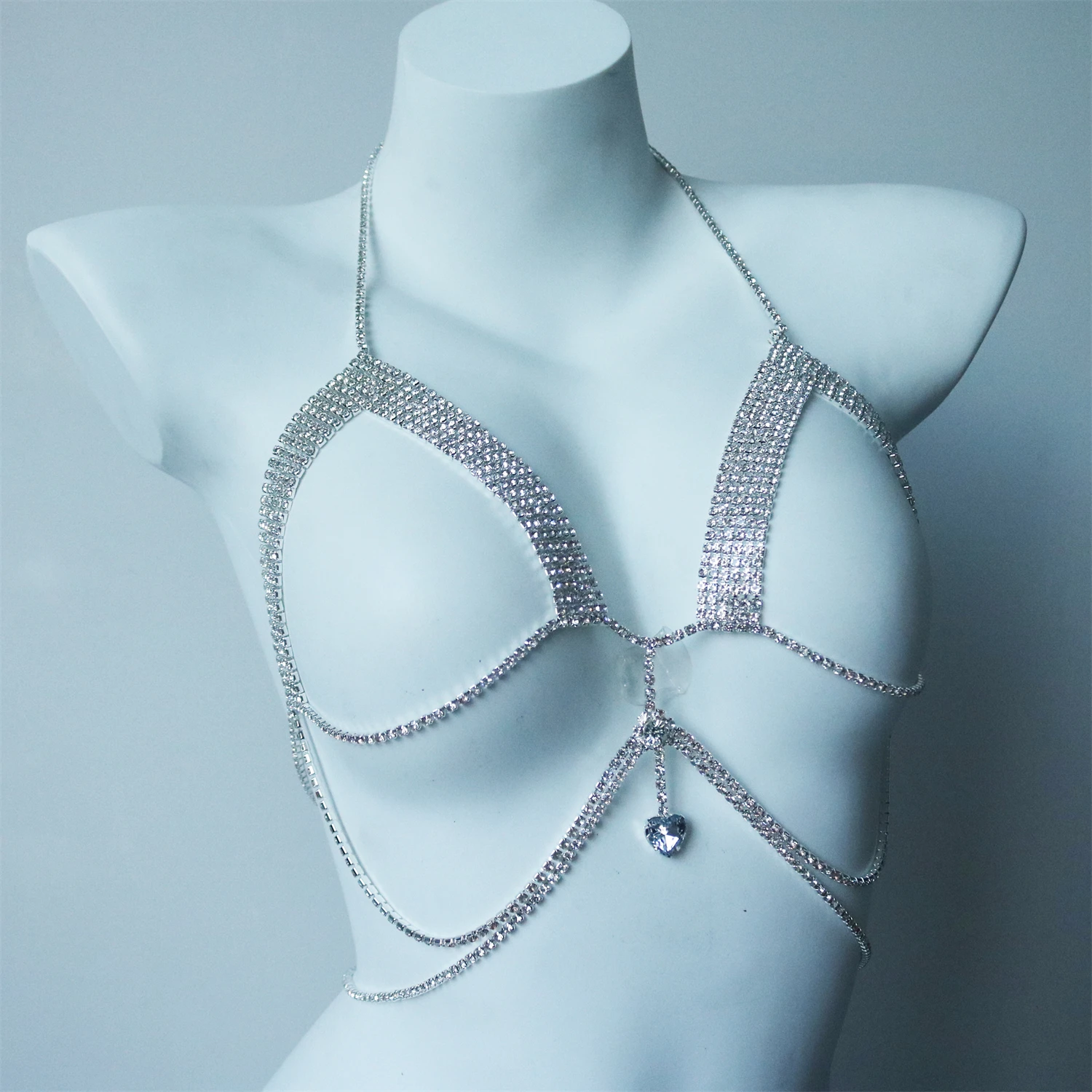 Sexy Shining Love Crystal Chest Chain Pendant Jewelry Nightclub Party Bikini Rhinestone Chest Chain Underwear Dressing